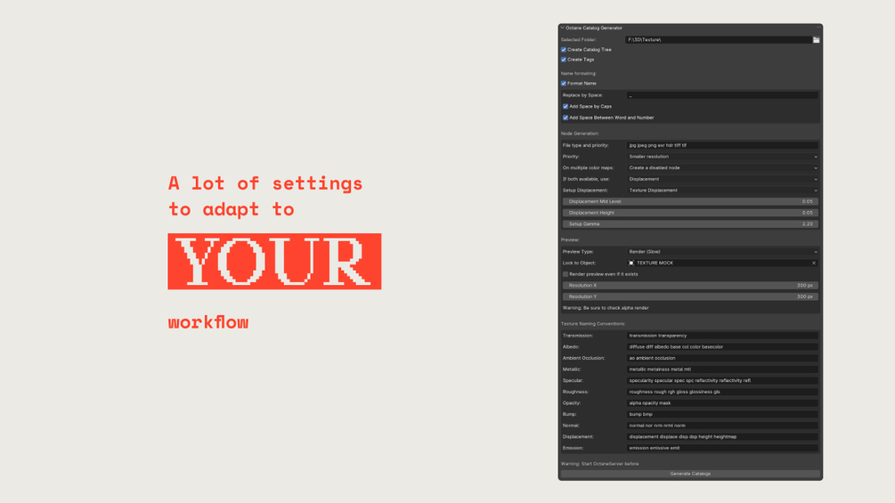 IMPORTANT: Before initiating the material generation process, ensure that the Octane Server is running to avoid prolonged generation times.